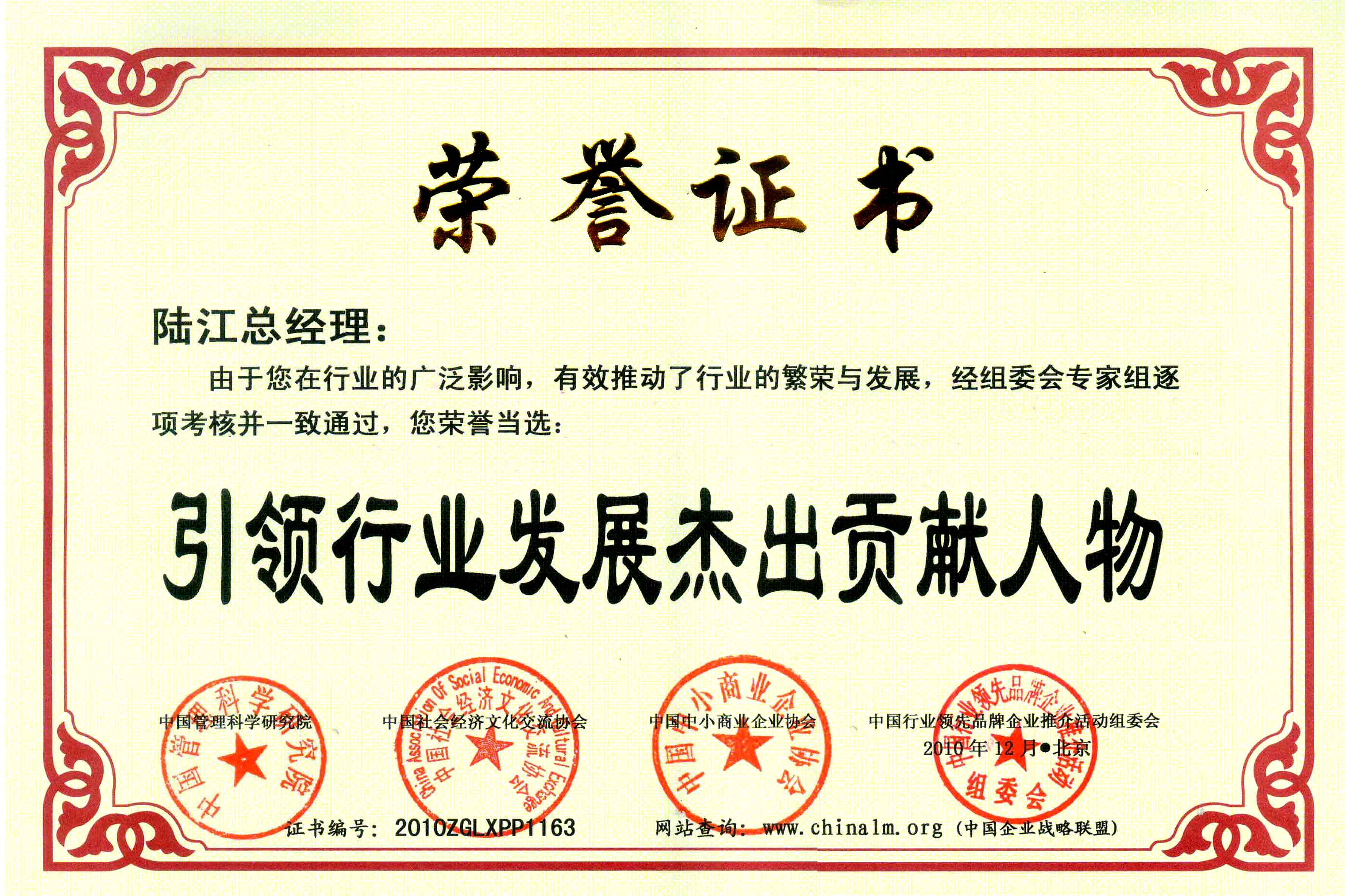 陸江榮獲醫(yī)藥行業(yè)影響人物證書
