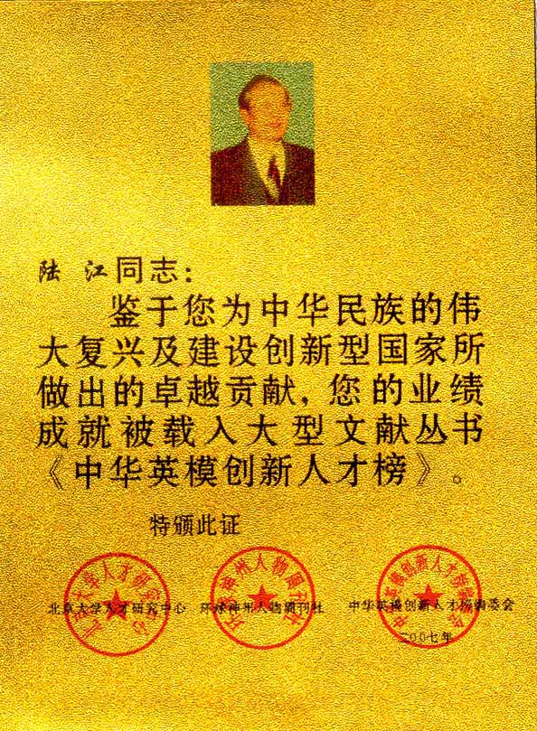 陸江的杰出貢獻(xiàn)被人民日?qǐng)?bào)社評(píng)為先進(jìn)個(gè)人